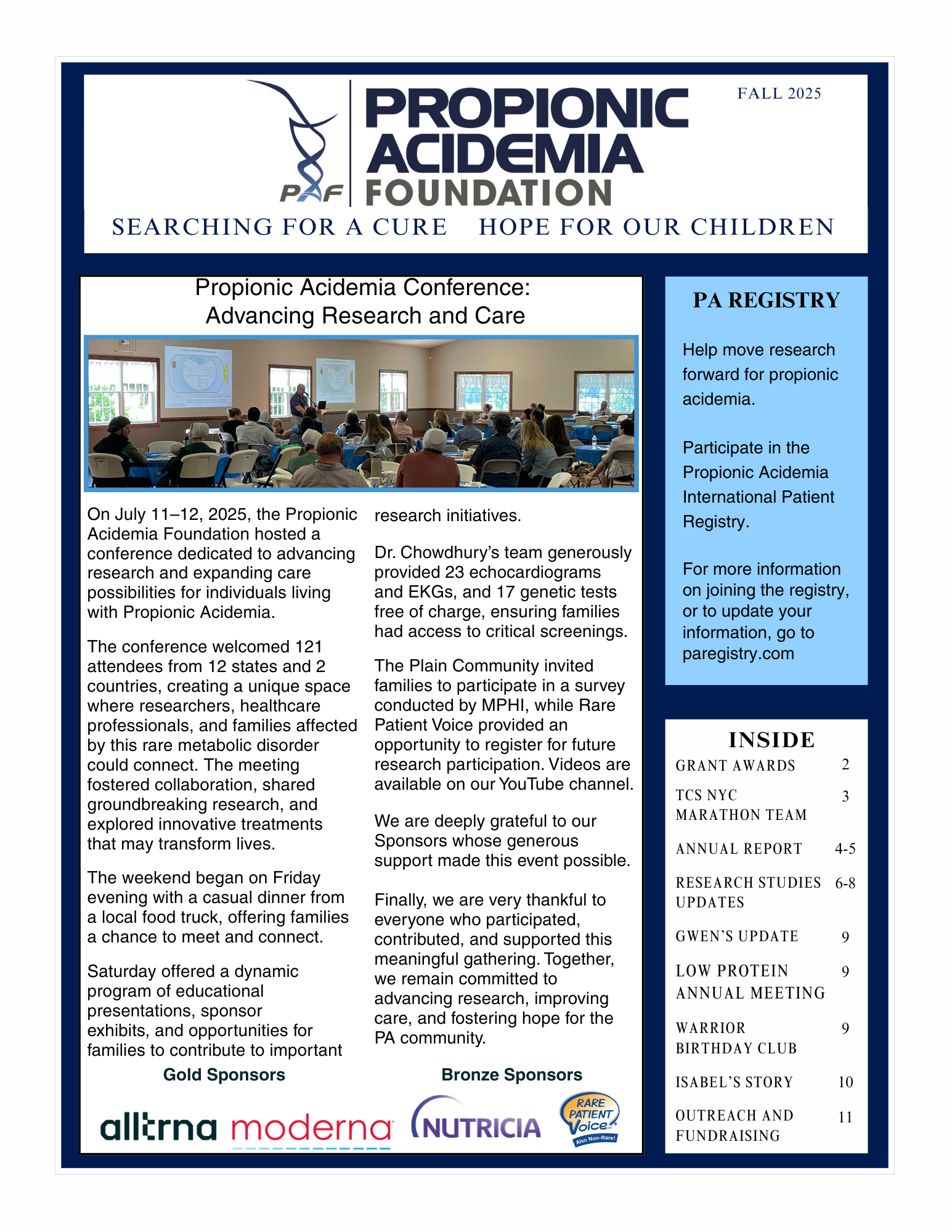 Propionic Acidemia (PA) is a rare disorder that is inherited from both parents. Neither parent shows symptoms, but both carry a defective gene responsible for this disorder. It takes two faulty genes to cause PA.